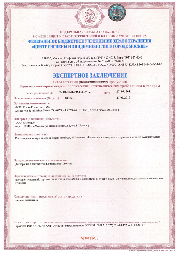 Сертификаты - Официальный дилер PARKER в Черкесске