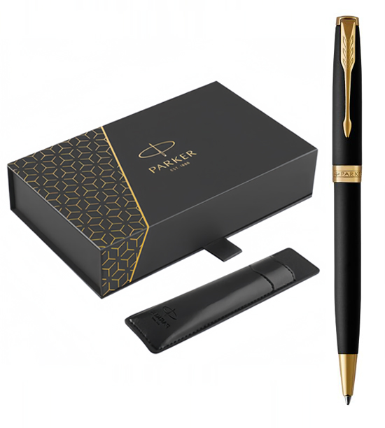 Набор Parker Sonnet Black GT (шариковая ручка + чехол) от официального дилера Parker в Черкесске. Вы можете дополнительно заказать гравировку, которая подчеркнет Вашу оригинальность и придаст памятность статусному подарку. Все ручки Паркер поставляются в фирменном футляре.