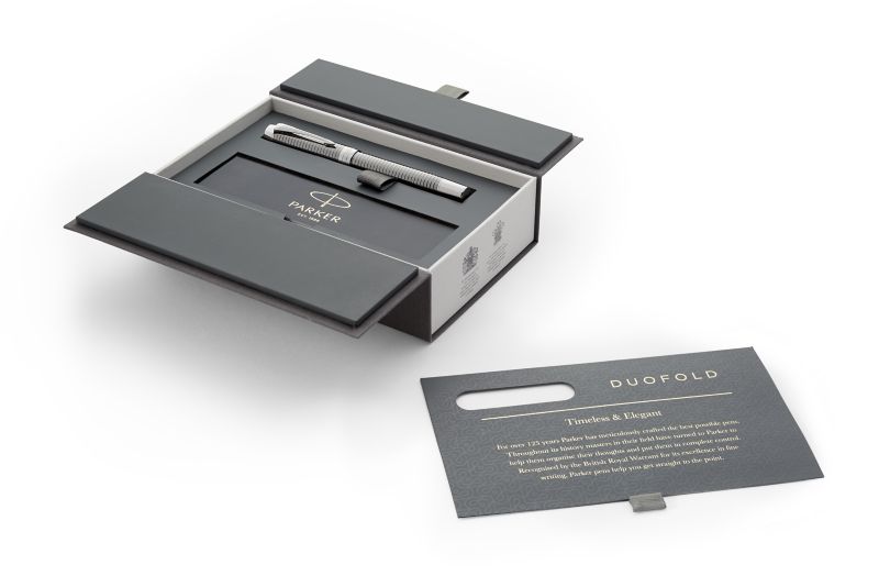 Ручка роллер Parker Duofold Prestige Ruthenium Chiselled CT от официального дилера Parker в Черкесске. Вы можете дополнительно заказать гравировку, которая подчеркнет Вашу оригинальность и придаст памятность статусному подарку. Все ручки Паркер поставляются в фирменном футляре.