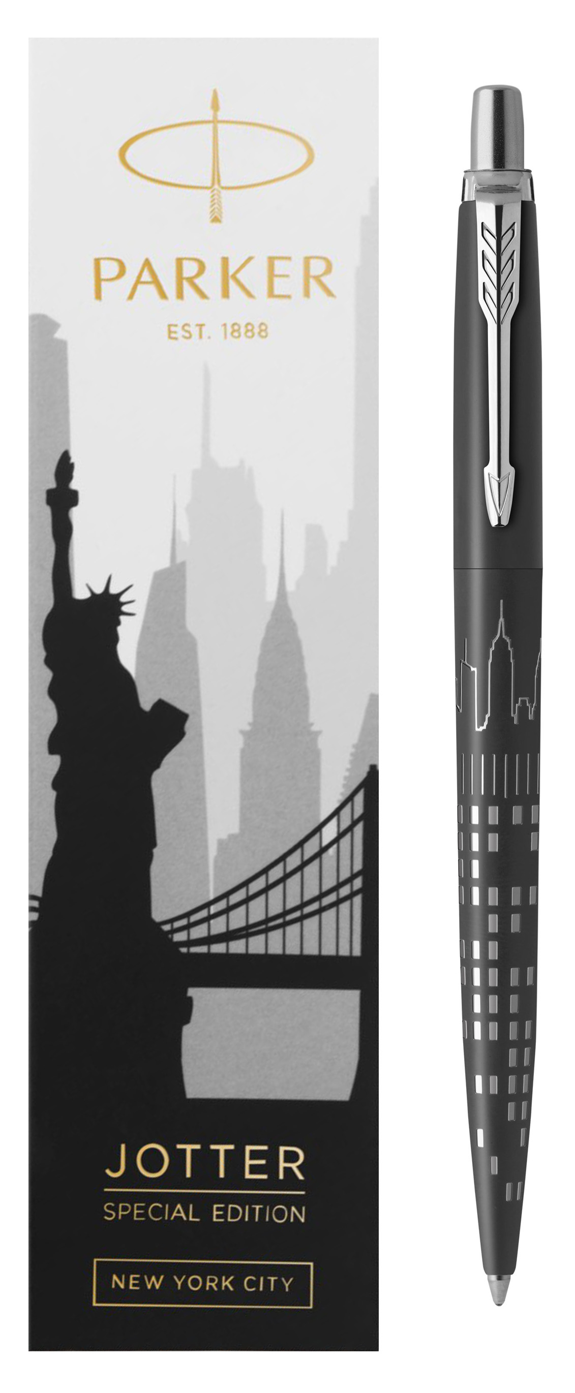Ручка шариковая Parker Jotter New York Black CT от официального дилера Parker в Черкесске. Вы можете дополнительно заказать гравировку, которая подчеркнет Вашу оригинальность и придаст памятность статусному подарку. Все ручки Паркер поставляются в фирменном футляре.