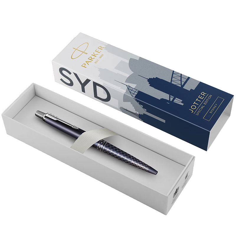 Ручка шариковая Parker Jotter Sydney Blue CT от официального дилера Parker в Черкесске. Вы можете дополнительно заказать гравировку, которая подчеркнет Вашу оригинальность и придаст памятность статусному подарку. Все ручки Паркер поставляются в фирменном футляре.