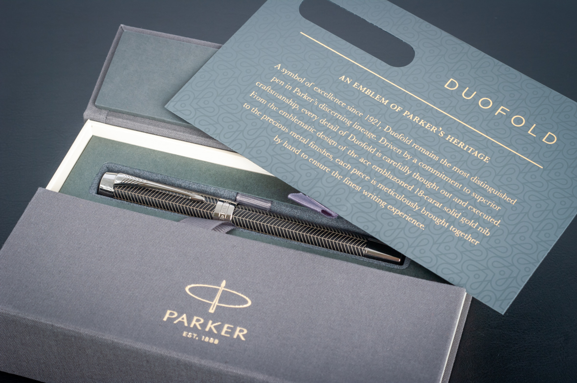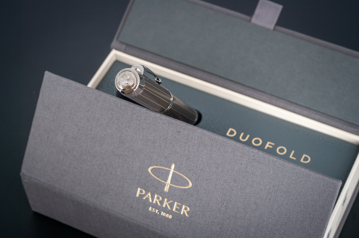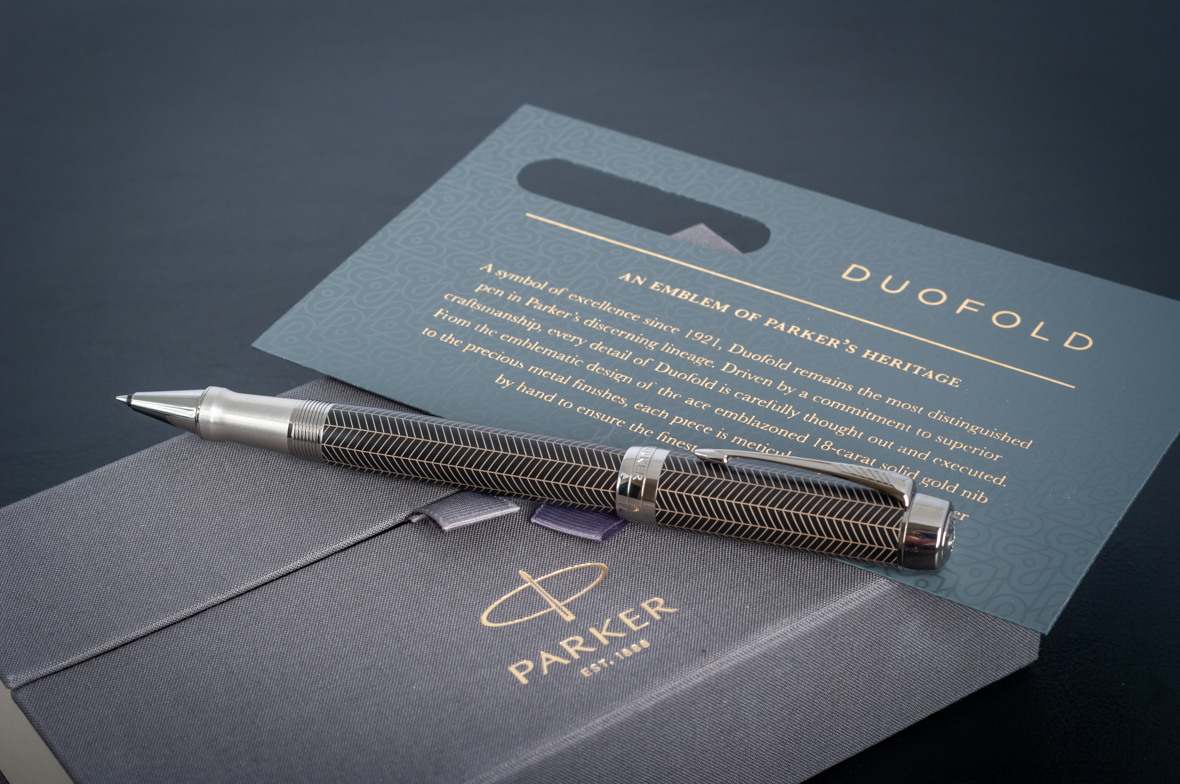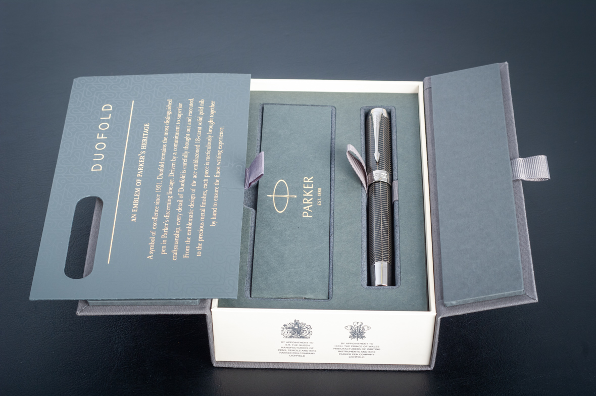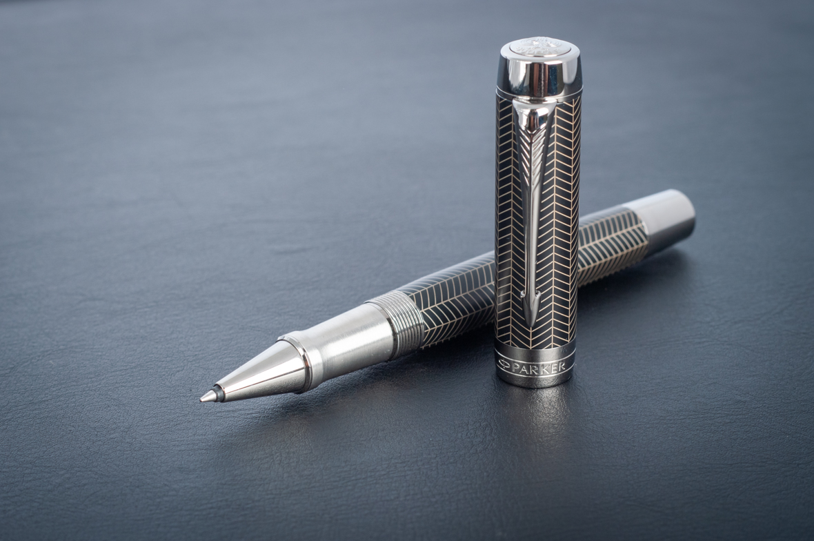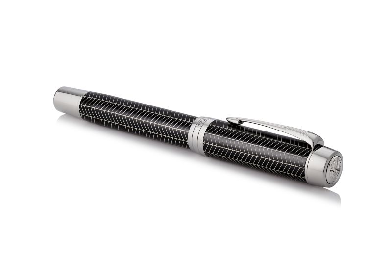 Ручка роллер Parker Duofold Prestige Centennial Black Chevron CT от официального дилера Parker в Черкесске. Вы можете дополнительно заказать гравировку, которая подчеркнет Вашу оригинальность и придаст памятность статусному подарку. Все ручки Паркер поставляются в фирменном футляре.